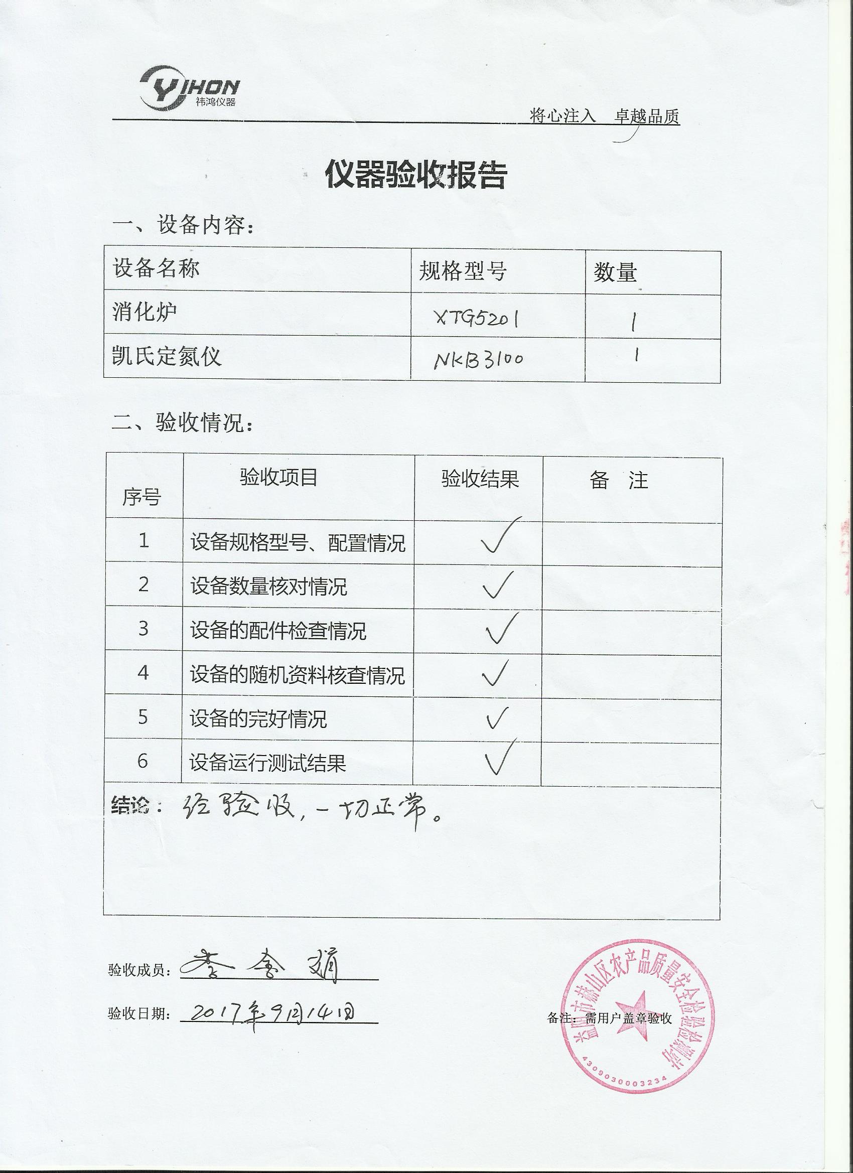 定氮儀驗(yàn)收?qǐng)?bào)告